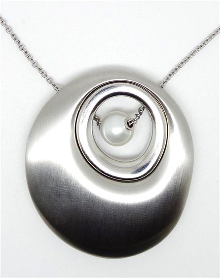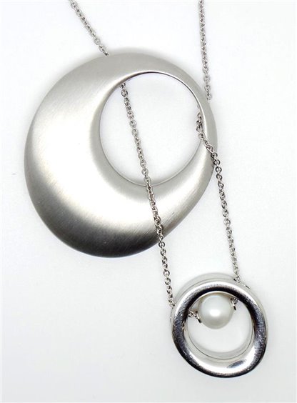 Pendente in acciaio satinato e lucido - Perla naturale Bianca - Catena in acciaio (43cm + 7cm) - Chiusura a moschettone. È possibile sfilare entrambi i ciondoli in acciaio per ottenere una collana con solo la perla o con il pendente in acciaio lucido e la perla.