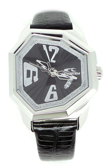 Orologio donna , movimento al quarzo , cassa in acciaio, vetro minerale prismatico, cinturino in pelle , diametro cassa 36mm., quadrante acciaio con contorno glitterato .