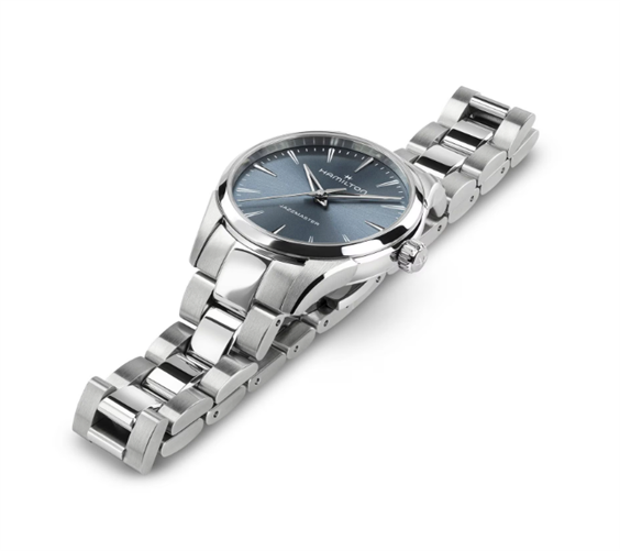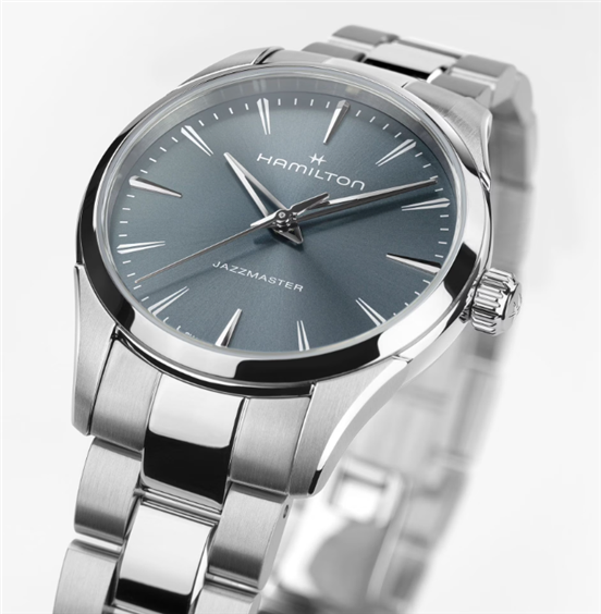 Intramontabile e raffinato, il Jazzmaster Quartz 32 mm presenta un quadrante blu polvere scuro spazzolato con finitura soleil e sfere “dauphine” scheletrate, che conferiscono un tocco moderno allo stile tradizionale. La cassa ultrasottile e i dettagli lucidi e spazzolati creano una silhouette elegante. Un orologio classico ed elegante per una raffinatezza disinvolta.