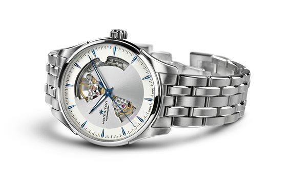 L'orologeria classica incontra il design contemporaneo in questo Jazzmaster Open Heart Automatic blu e argento. Le precise traforature del quadrante da 40 mm permettono di ammirare il movimento interno prodotto in Svizzera e donano a questo segnatempo sofisticato grande personalità.
