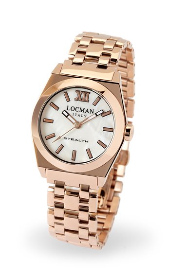 Orologio Locman Collezione: STEALTH - LADY Quadrante: colore bianco perlato; indicatore: combinazione di numeri romani e indici (applicati) Cassa: in acciaio e titanio, con trattamento PVD; dimensione 33 mm Movimento: solo tempo al quarzo Cinturino: bracciale in acciaio Vetro: minerale antigraffio, trattamento zaffiro Impermeabilità: 5 ATM