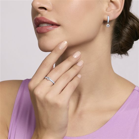 Orecchini donna , argento 925 rodiato , smalto azzurro , acquamarina sintetica , zirconi.