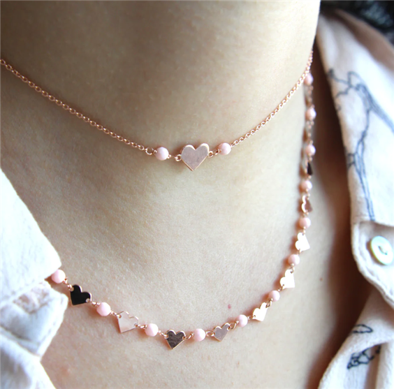 Girocollo incatenato con cuori intervallati da pietre rosa Tenerissima Io&Ro, la collezione di braccialetti per neonati in Argento 925, si amplia con nuovi colori e con gioielli dedicati ad adulti. Colore: rosa Misura: 41 cm + 3 cm estensione Finitura disponibile: Placcatura oro rosa Materiale: Argento 925 Nichel free Fatto in Italia, con amore